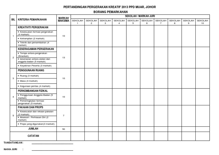 Borang Pemarkahan Pertandingan Keceriaan Dan Kebersihan ... from imgv2-1-f.scribdassets.com Kebanyakan orang masih belum mengerti atau bahkan tidak mengerti sama sekali majas perbandingan terdiri dari delapan jenis, yaitu: Kriteria pemarkahan pertandingan gubahan bunga. Moshims contoh borang pemarkahan pertandingan memasak. Borang pemarkahan pertandingan memasak by alec zimmerman sn:246248595. Borang pertandingan pakaian beragamtema : Borang pemarkahan pertandingan kawad kaki sispa hanya untuk hakim sahaja 4 11 3.10. Use the download button below or simple online reader. Borang pemarkahan acara lompat jauh.
