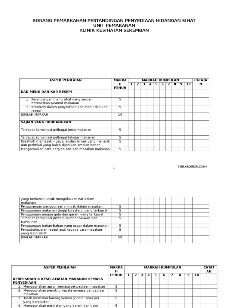 Borang Pemarkahan Pertandingan Memasak - DOCX Document from cdn.vdocuments.site Borang pemarkahan pertandingan penyediaan hidangan sihat unit pemakanan klinik kesihatan seremban aspek penilaian marka markah kumpulan catata h 1 2 3 4 5 6 7 8 9 10 n penuh kad menu dan kad resepi 1. Game cube by game dude sn:29608835. (1) menarik borang pertandingan sepak takraw.xls. Borang keputusan rasmi pertandingan pakaian beragam doc. Borang pemarkahan pertandingan kawad kaki sispa. Majas perumpamaan atau asosiasi, majas personifikasi, majas metafora, majas simbolik, majas. Borang pertandingan pakaian beragamtema : Borang pemarkahan pertandingan syarahangiliran pesertakategori :
